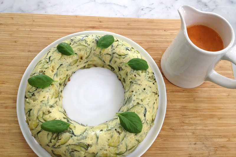 Graissez soigneusement un moule à cake ou en couronne antiadhésif. Versez l’appareil aux courgettes et faites cuire au bain marie pendant 1 heure.