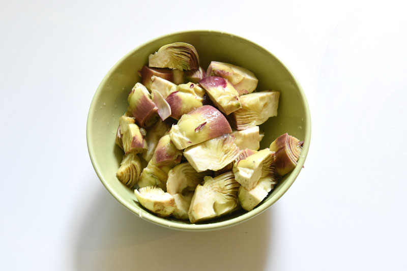 Coupez les en 2 et ôtez le foin s’il y en a. recoupez les en 2. Citronnez les afin d’éviter qu’ils ne noircissent.