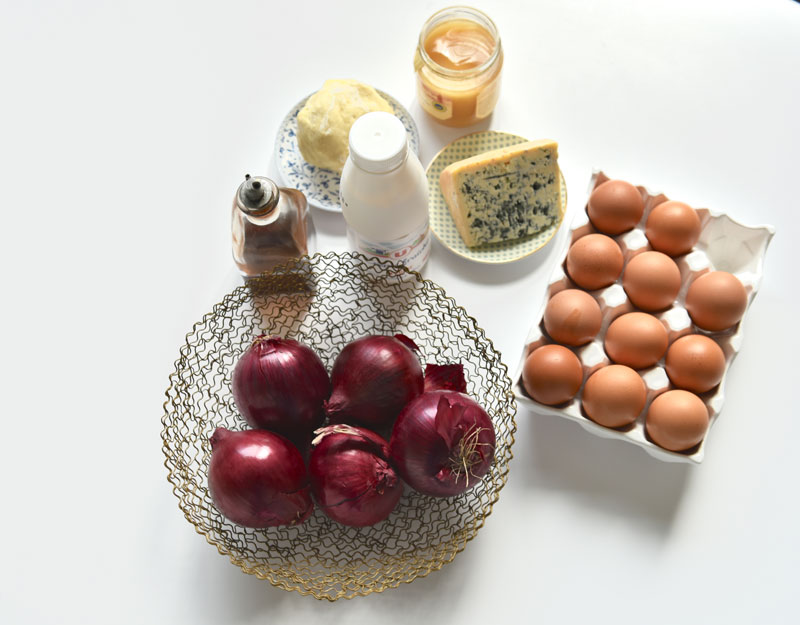 J’ai eu l’idée de préparer cette tarte lors d’un diner de copains. Je voulais qu’elle s’associe avec un vieux Sauternes dégusté en apéritif. Le persillé du fromage et la douceur des oignons pour s’allier à la douceur et l’exubérance de ce vieux millesime.