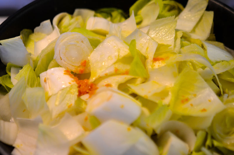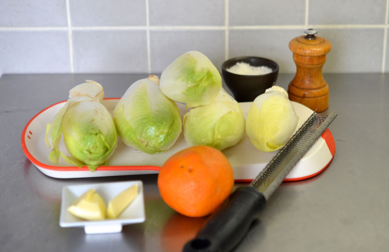 Lavez les endives, enlevez les premières feuilles si elles sont abimées et coupez les en grosses lamelles.